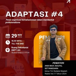 Tema : Peran Organisasi Kemahasiswaan dalam Membentuk ProfesionalismePemateri : Andi Muhammad Naufal Setyanegara Organisasi kemahasiswaan merupakan salah satu sarana paling strategis dalam membentuk karakter dan profesionalisme mahasiswa sebelum memasuki dunia kerja. Melalui berbagai…