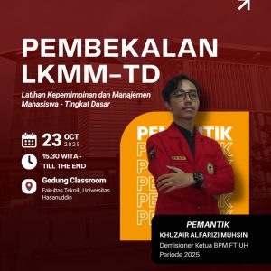 Kegiatan Latihan Keterampilan Manajemen Mahasiswa Tingkat Dasar (LKMM-TD) #1 ini berfokus pada pengembangan peran mahasiswa sebagai agen perubahan yang berkontribusi aktif dalam lingkungan kampus. Mahasiswa, khususnya anggota HMS FT-UH, diharapkan tidak hanya menjadi…