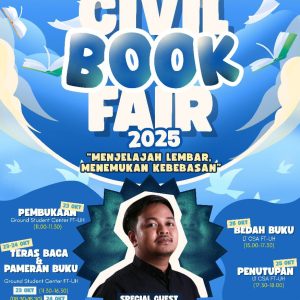 Civil Book Fair 2025 telah sukses diselenggarakan selama tiga hari dengan mengusung tema “Menjelajah Lembar Menemukan Kebebasan”, didukung oleh kerja sama dengan mitra toko buku (Socius dan Pustaka Merah Hitam) serta media partner…