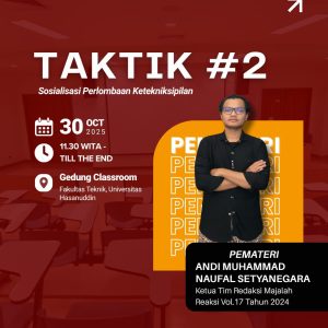 Kegiatan Sosialisasi TAKTIK II dilaksanakan pada 30 Oktober 2025 di Gedung Classroom pada pukul 11.30–13.00 WITA. Acara dibuka dengan penyampaian motivasi oleh pemateri untuk mendorong semangat dan meningkatkan minat peserta dalam mengikuti berbagai…