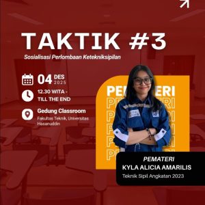 Kegiatan Sosialisasi TAKTIK II dilaksanakan pada 30 Oktober 2025 di Gedung Classroom pada pukul 11.30–13.00 WITA. Acara dibuka dengan penyampaian motivasi oleh pemateri untuk mendorong semangat dan meningkatkan minat peserta dalam mengikuti berbagai…