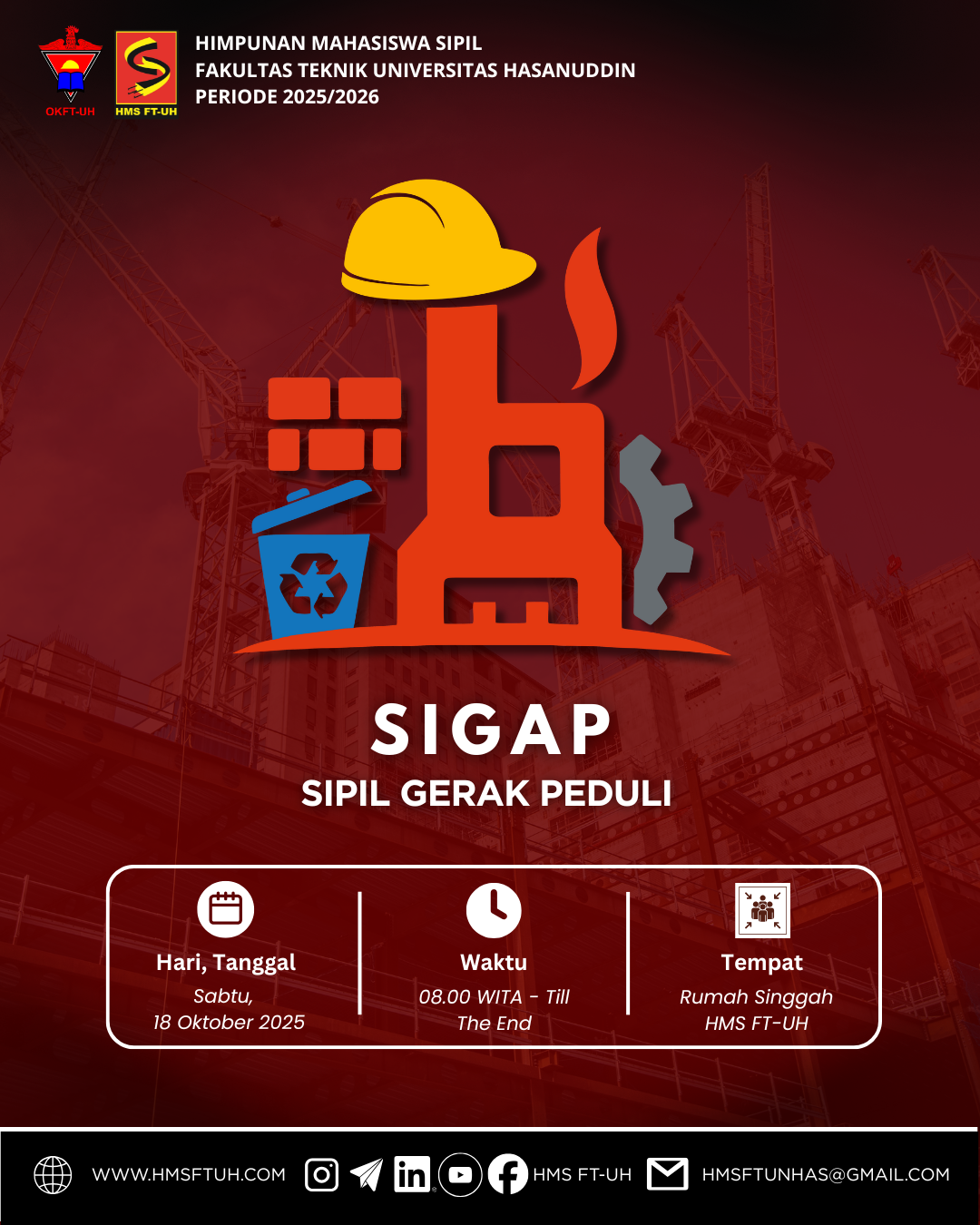Sipil Gerak Peduli 2025 merupakan salah satu dari program kerja BE HMS FT-UH Periode 2025/2026, kegiatan ini masih sedang berlangsung di Dusun Masale, Desa Tompobulu, Kabupaten Maros, Sulawesi Selatan. Kegiatan ini merupakan bentuk implementasi dari salah satu Tri Dharma Perguruan Tinggi, yaitu Pengabdian Masyarakat.