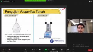 Kegiatan ini dibagi menjadi dua sesi dimana pada setiap sesi terdapat tiga pembicara dari tiga perguruan tinggi berbeda yang akan mempresentasikan risetnya. Sesi pemaparan materi dan sesi diskusi dipandu oleh Saudara Yusril Ramadhan (C’18) selaku moderator. Pada sesi pertama, materi dibawakan oleh Saudara Andika Monanta Emilidardi (UGM) dengan tema “Shear Panel Damper Sebagai Sistem Peredam Gempa Struktur Jembatan Berbiaya Murah”; Saudara Teguh Priono (UNHAS) dengan tema “Perilaku Mekanik dan Ketahanan Beton Berbahan Pasir Slag Nikel dan Fly Ash”; dan Saudari Pradyta Galuh (IPB) dengan tema “Pengaruh Dissolved Organic Carbon (DOC) pada Efektivitas Perbaikan Tanah Gambut dengan Metode Calcite Precipitation.” Kemudian dilanjutkan pada sesi kedua, materi dibawakan oleh Saudara Amanda Gultom (UGM) dengan tema “Perancangan Ulang Rumah Instan Struktur Baja Menggunakan Profil Pipa Untuk Berbagai Wilayah Zona Rawan Gempa”; Saudari Febrika Rahmania Nurul (UNHAS) dengan tema “Kuat Tekan Mortar Berbahan Terak Nikel Granulasi Sebagai Pengganti Pasir”; dan Saudara Akbar Renaldi Loebis (IPB) dengan tema “Efektivitas Calcite Precipitation dengan Biocatalyst Bubuk Kedelai Sebagia Meode Biogrouting pada tanah Terlikuifaksi.”